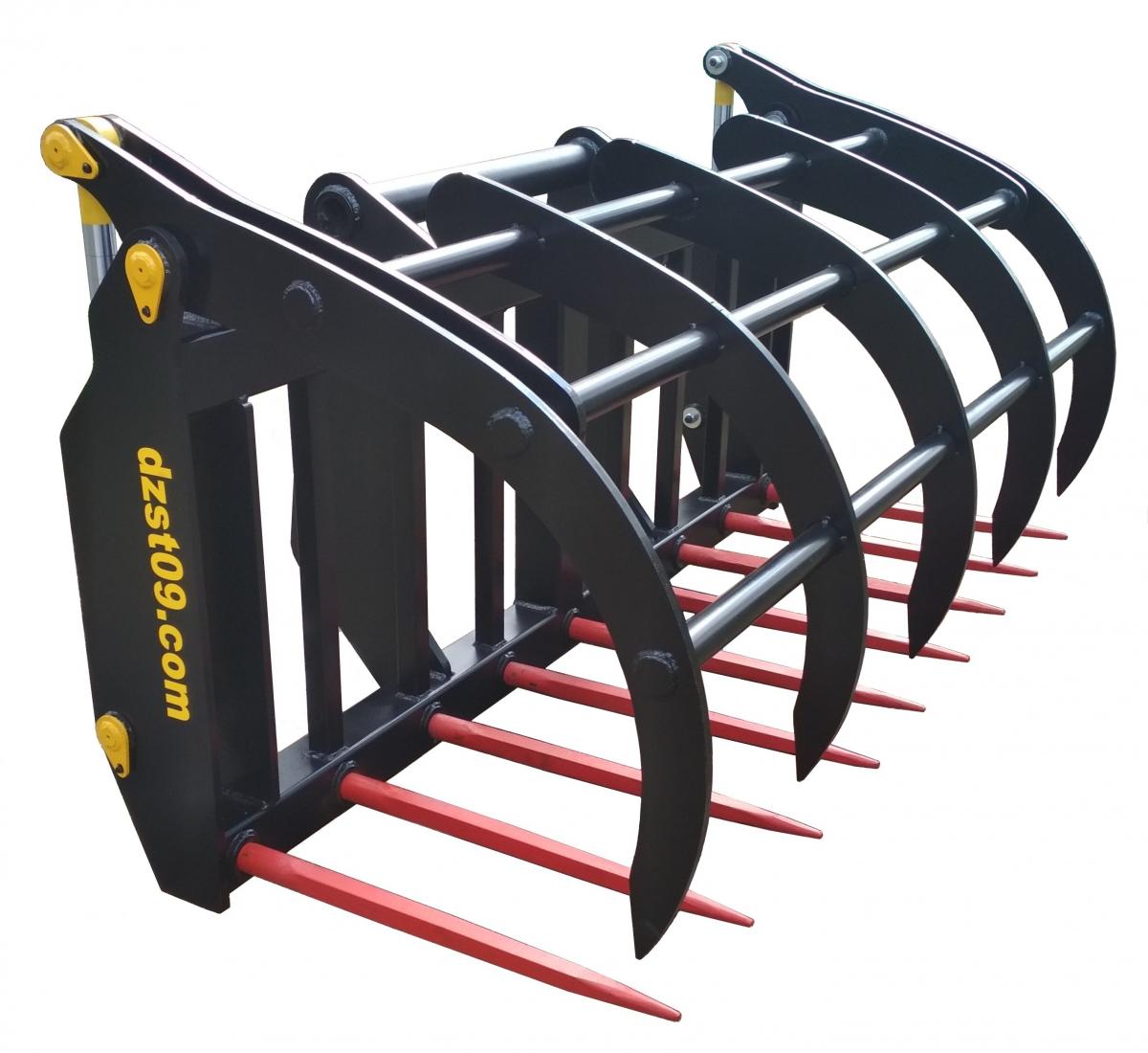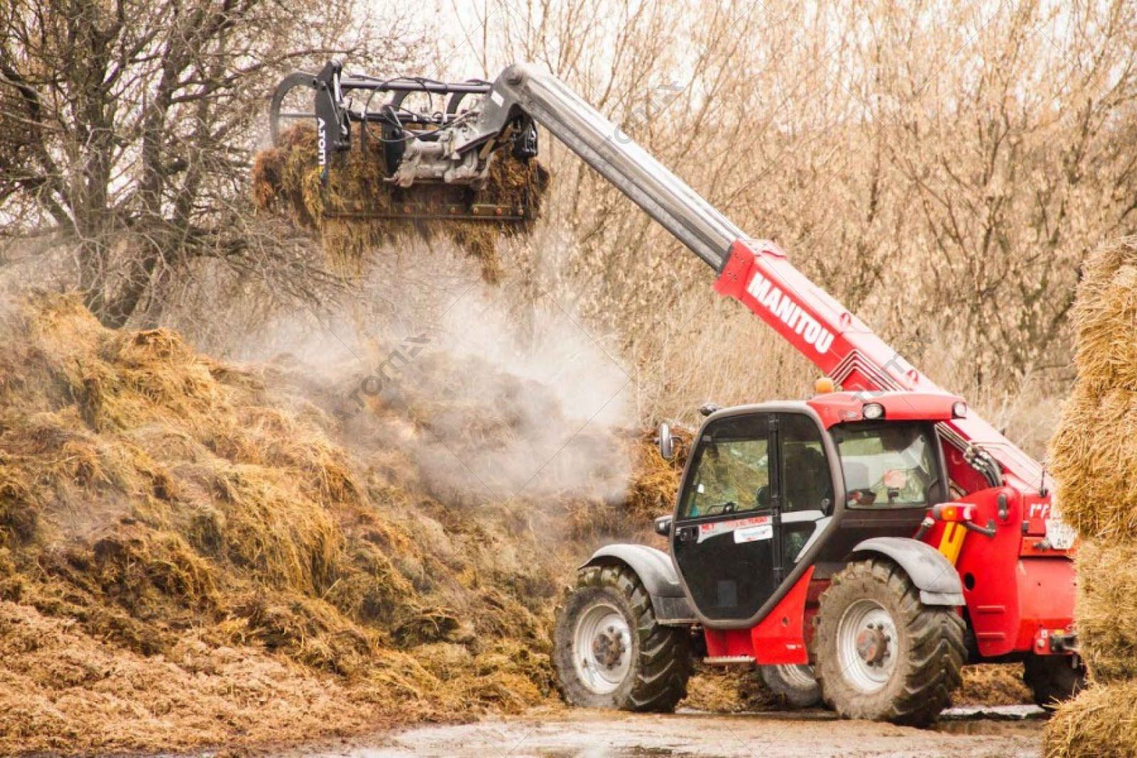 Навесное оборудование для телескопического или фронтального погрузчика — захват для компоста. Оно устанавливается на фронтальные погрузчики и телескопические погрузчики. Данный механизм предназначен для погрузки, перемещения и сбора компоста, навоза и помета. Это незаменимое оборудование при ведении животноводческих работ. Верхняя часть состоит из серповидных зубьев, которые прочно прижимают набранный материал к стенке захвата и предотвращают рассыпание. Движение осуществляется с помощью двух гидроцилиндров. В ушах цилиндров сферические шарниры. Кроме того, конструкция захвата позволяет задействовать его объем для выполнения дополнительных процедур: для переноски и транспортировки бревен, кустов, хвороста и другого.