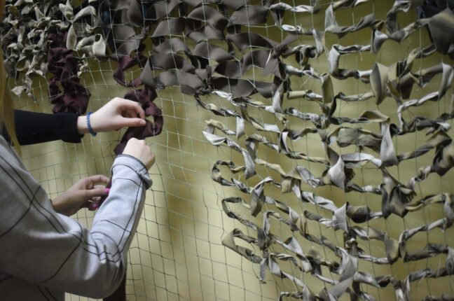 Сетки изготовляют из любой ткани, а затем просто окрашивают из пульверизатора. Недавно волонтеры столкнулись с большой проблемой – закончилось основание под сетки. Переселенцы из Херсона, которые являются частью команды «Стопятнашки», решили прийти на помощь.