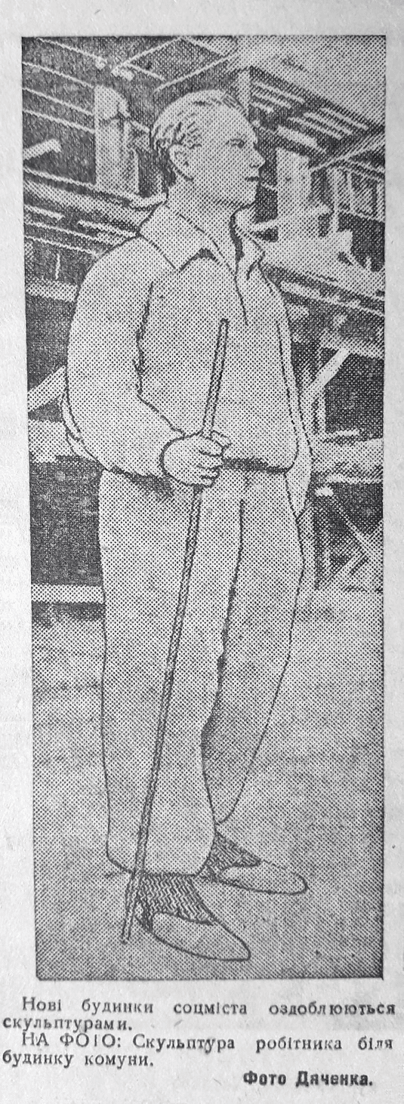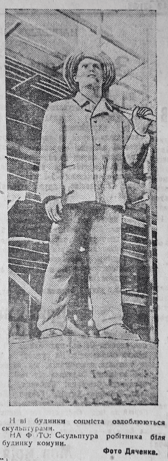 Біля входу до Будинку комуни у Кривому Розі розміщувалися скульптури молодих людей. Вони були символом того, що в новому будинку живуть молоді люди.
