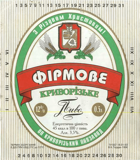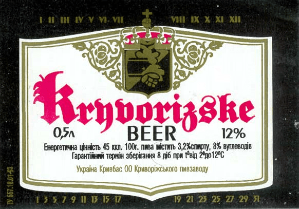 • “Криворізьке” – світле із щільністю – 12%, міцністю – 3,2%, калорійність – 45 ккал;
