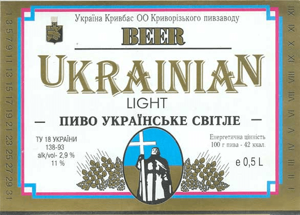 • “Українське світле” – світле, густина – 11%, міцність – 2,8%, калорійність – 42 ккал;