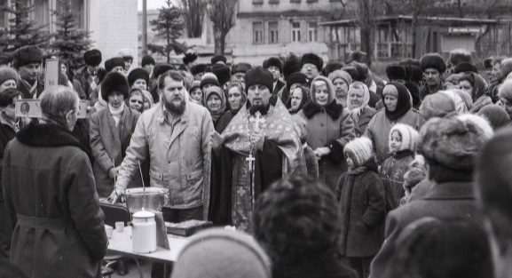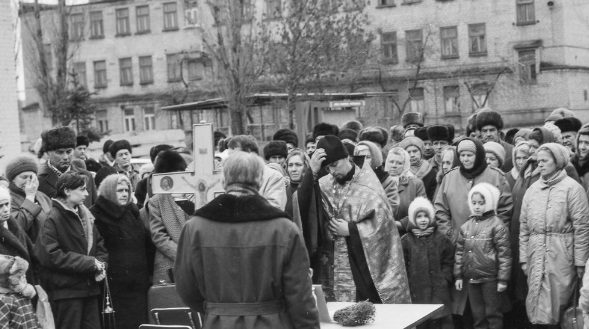 Фото: “Криворізька старовина”. Гданцівка. Кінець 1980-х чи початок 1990-х. Освячення заводу гірничого машинобудування “Комуніст”.